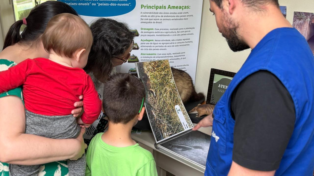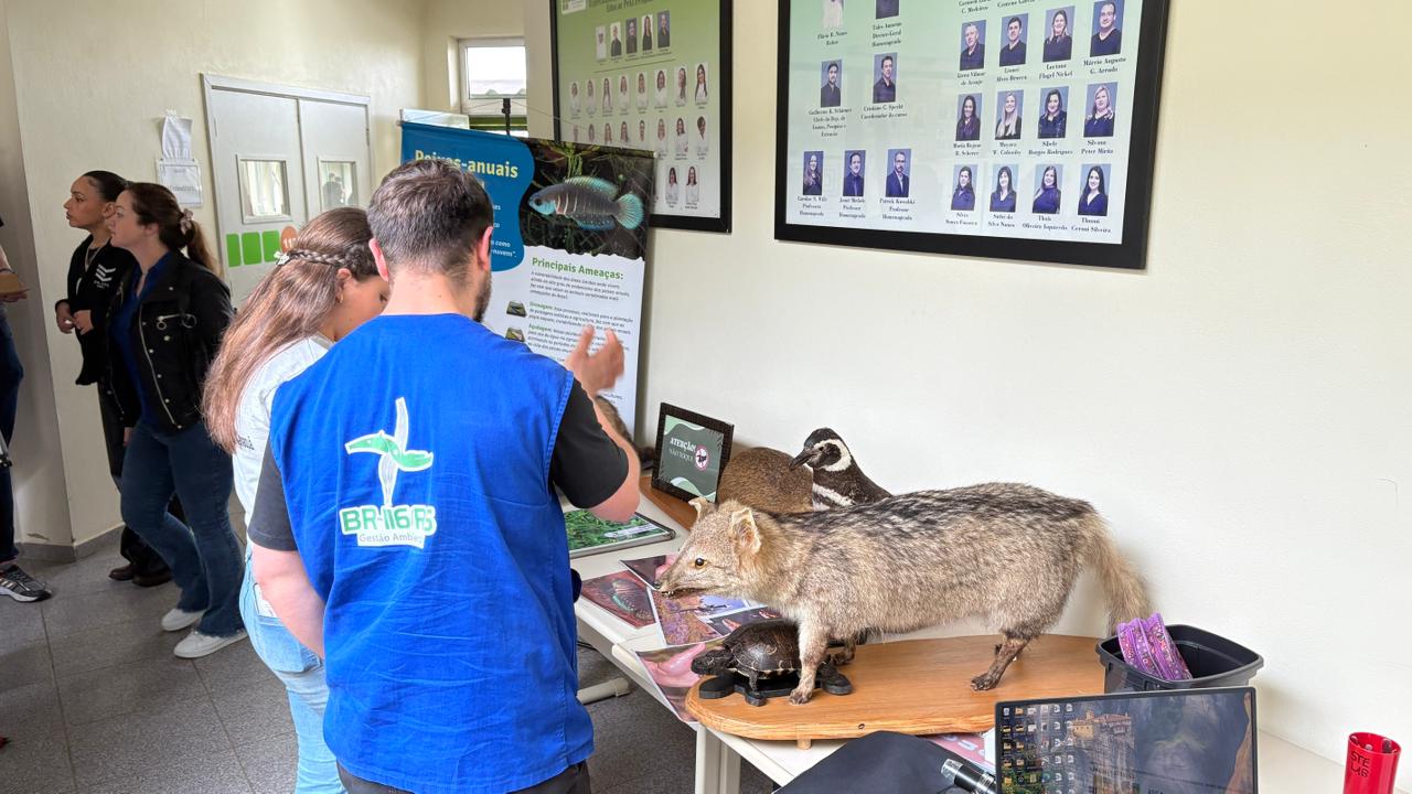 A Gestão Ambiental das obras de duplicação da BR-116/RS (Guaíba a Pelotas) montou seu estande com materiais de divulgação dos programas e medidas de preservação adotadas no empreendimento. No espaço, os participantes do evento também puderam conhecer de perto os exemplares de animais taxidermizados (empalhados) emprestados do acervo pedagógico do Museu de História Natural da Universidade Católica de Pelotas (MUCPel) e utilizar uma lupa digital para observar detalhes da flora local.